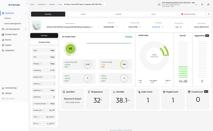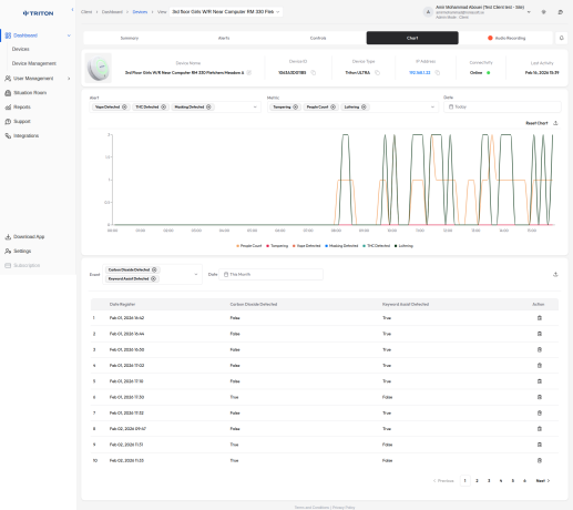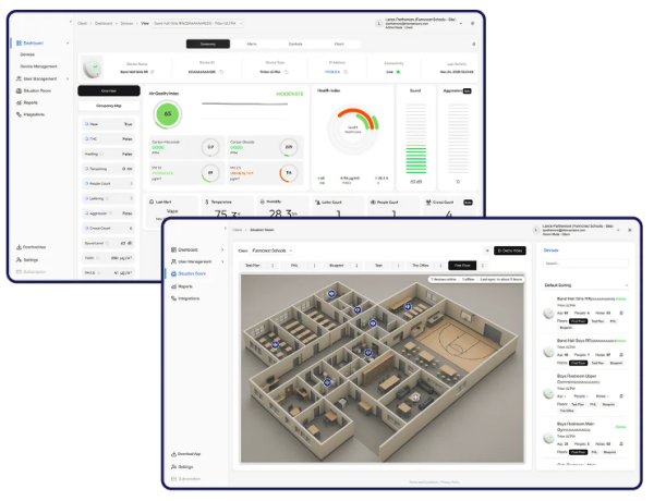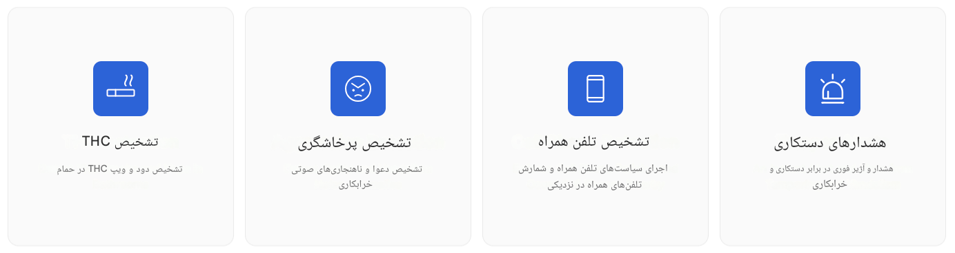 دستگاه ما به طور همزمان استفاده از موبایل، ویپ، نویز و تغییرات کیفیت هوا را شناسایی کرده و هشدار میدهد.